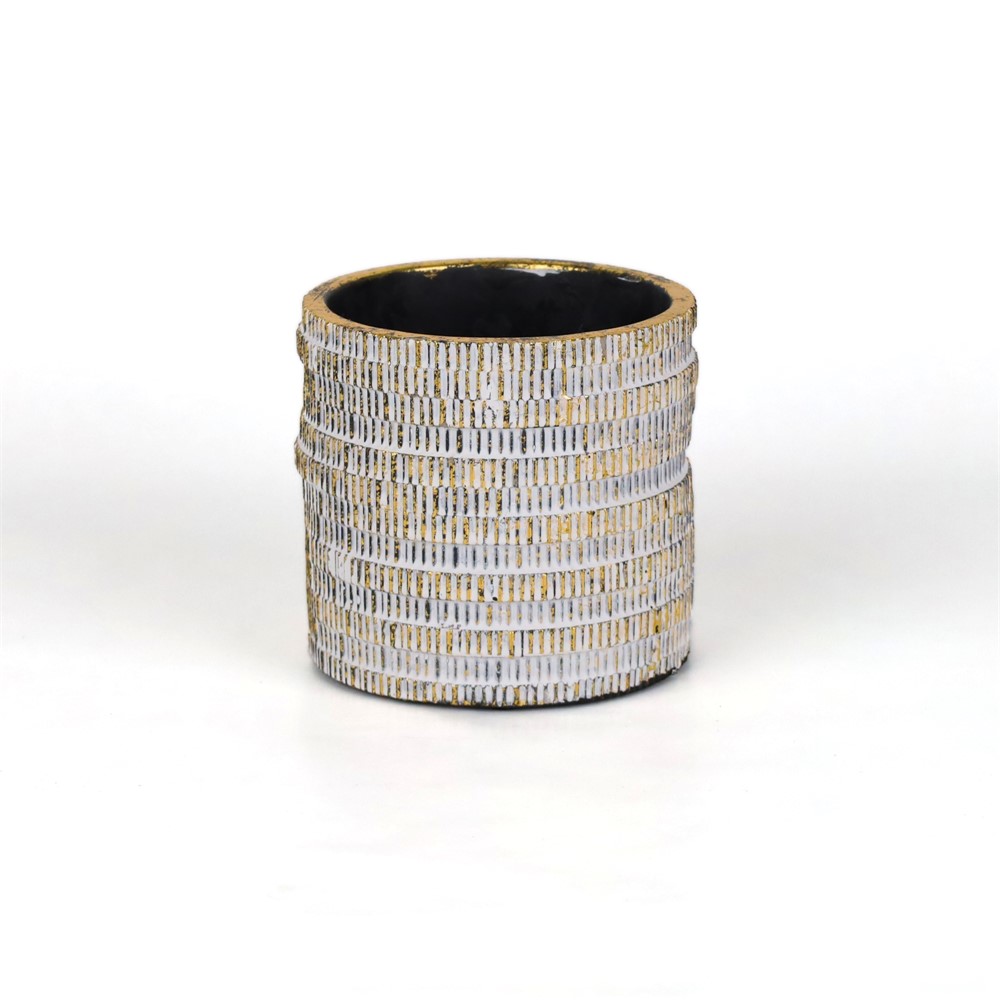 Cement posuda rebrasta d12xh12cm bijela/zlatna