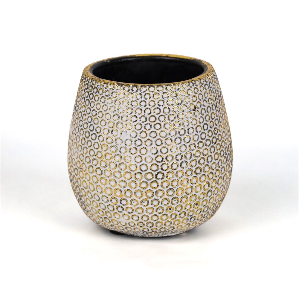 Cement posuda okrugla d12,5xh12cm točke bijela/zlatna