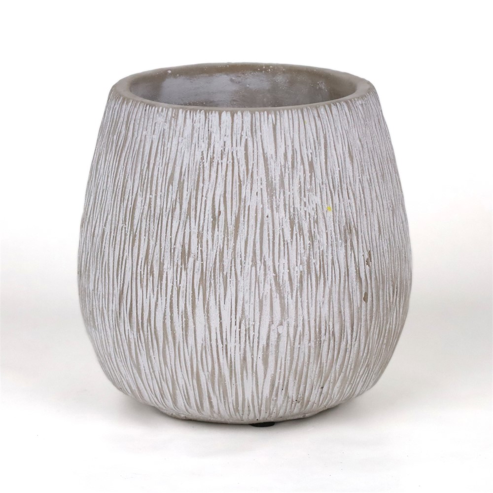 Cement posuda okrugla d17xh16cm okomiti valovi siva/bijela