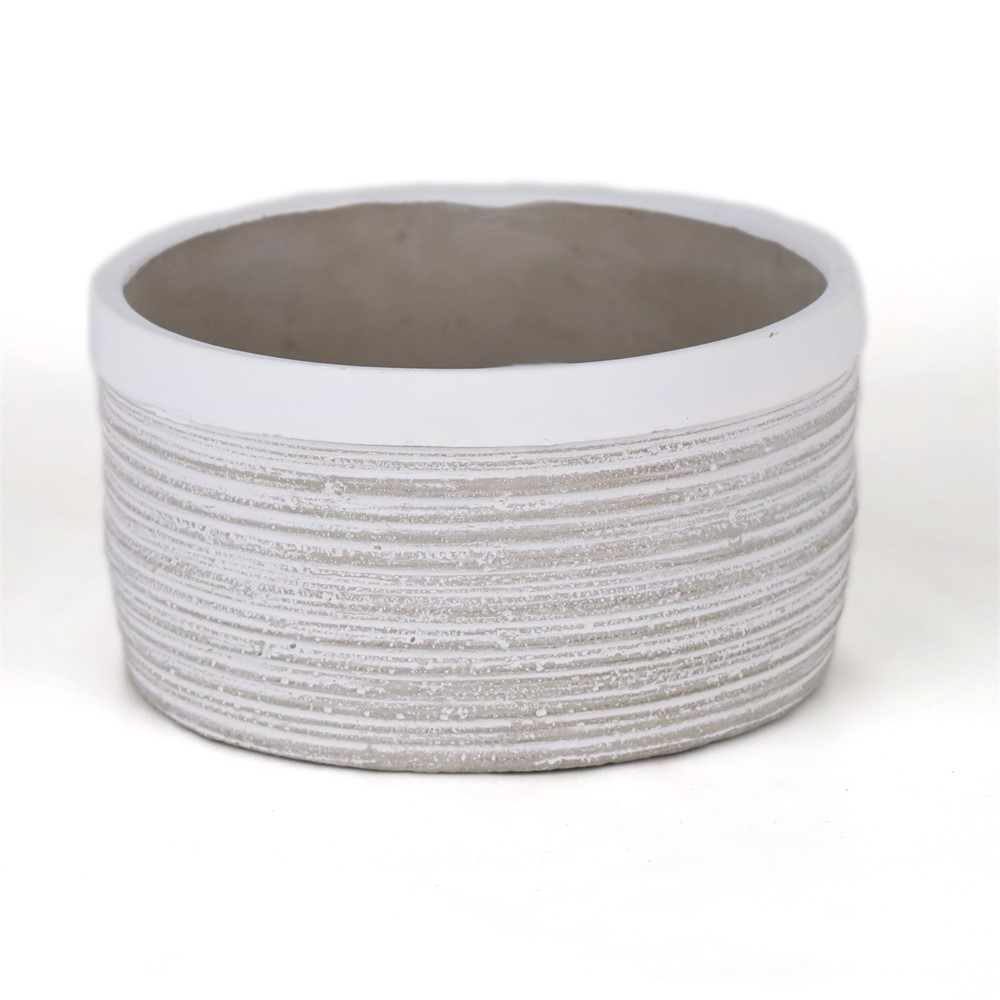 Cement posuda okrugla s bijelim rubom d14,5xh14cm t.siva