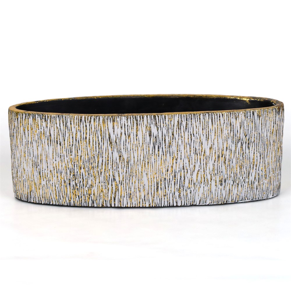 Cement posuda oval 35x13xh12cm bijela/zlatna