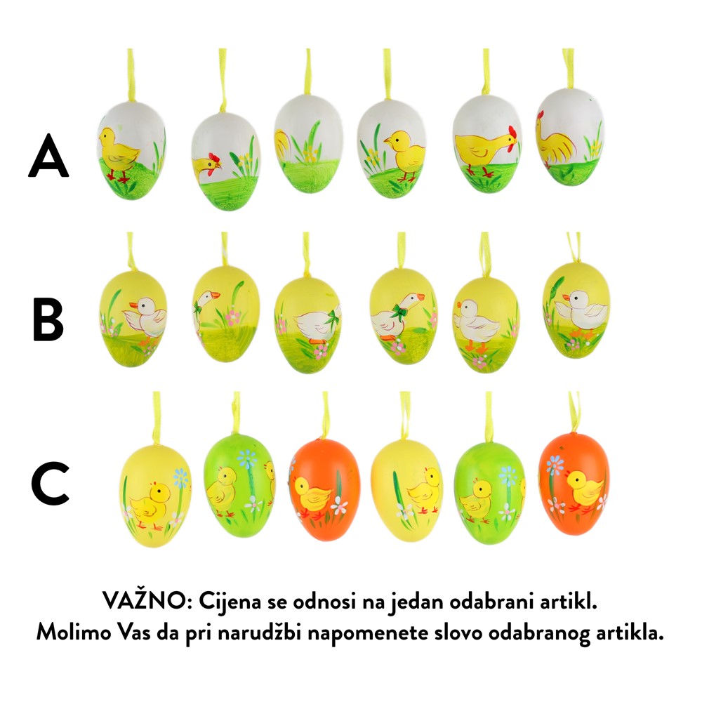 Jaja plastična 7cm 6kom oslikana mix boja