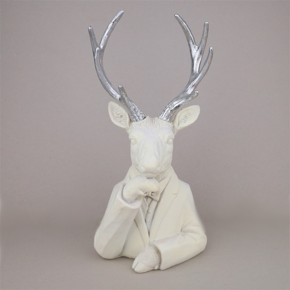 Jelen bista polirezin flokirana h45cm 19x17cm bijela/srebrna