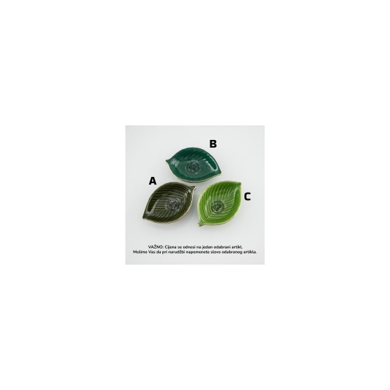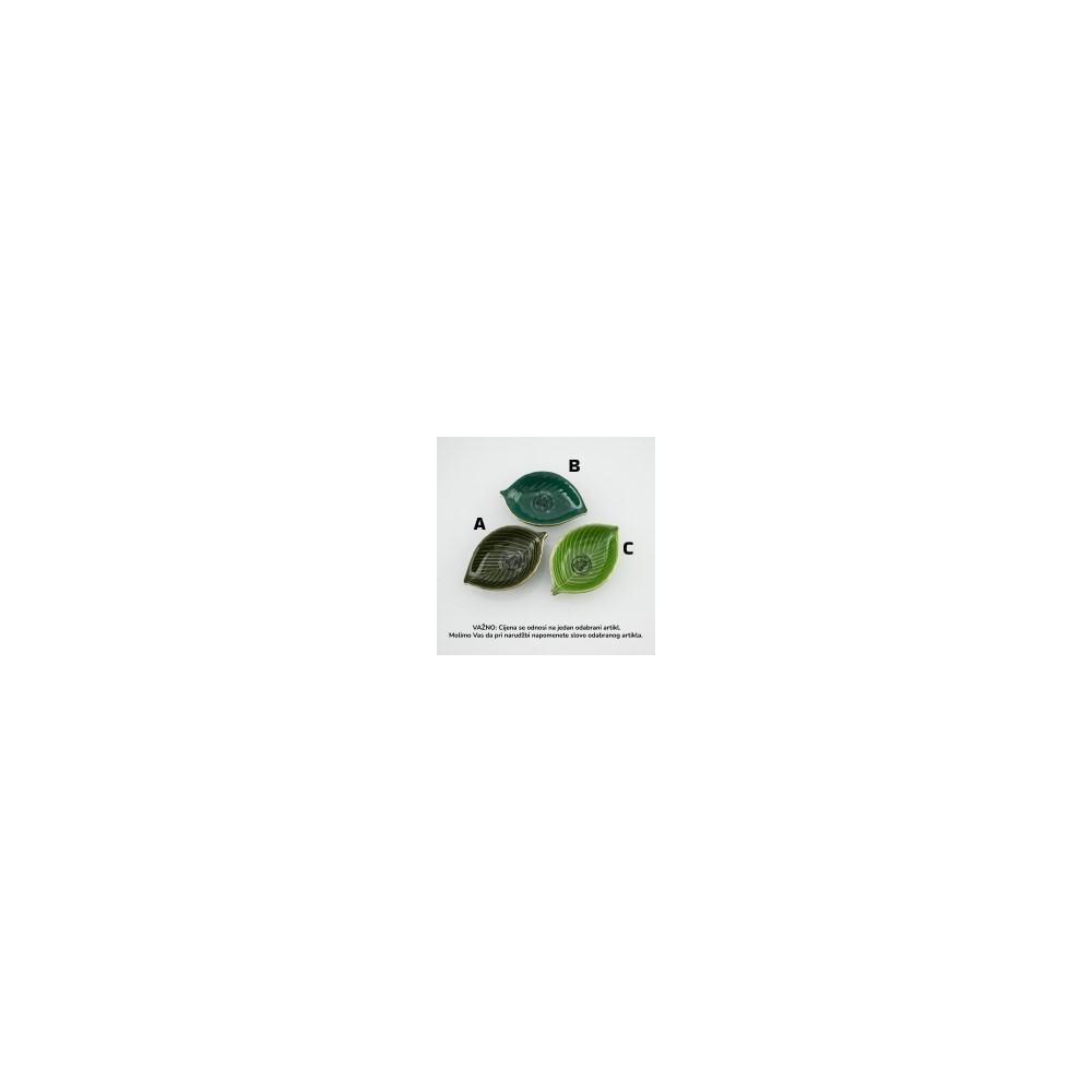 Keramička posuda list 11x7xh2,5cm zel/smaragd/olive 3ass