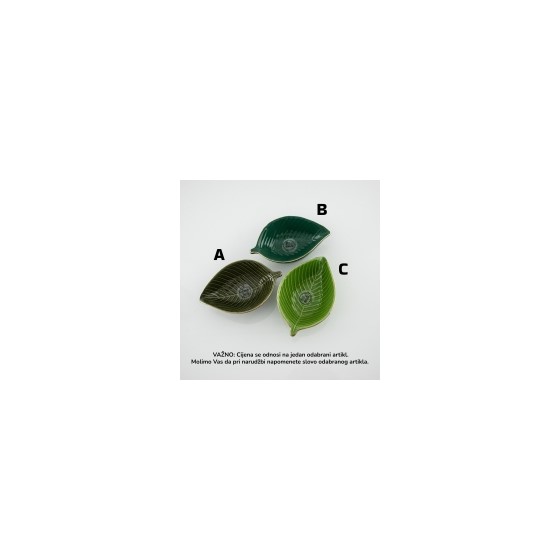 Keramička posuda list 16x9,5xh4cm zel/smaragd/olive 3ass