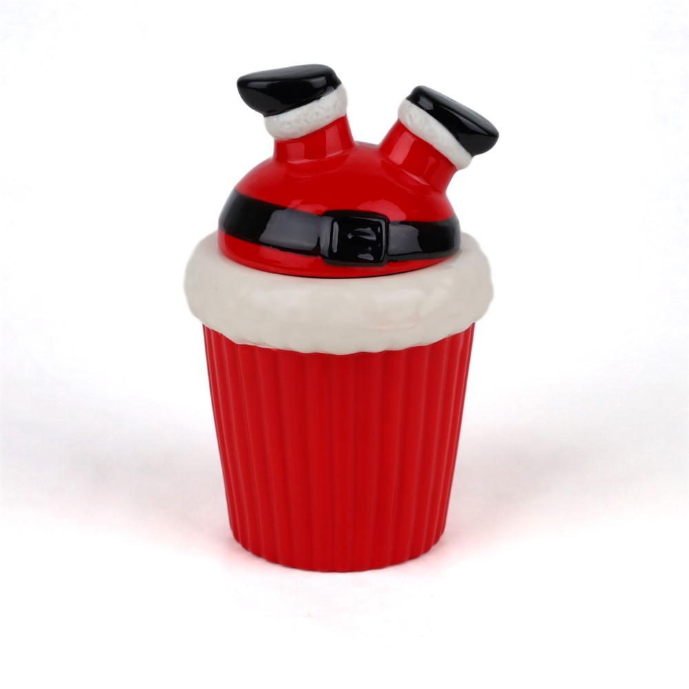 Keramička posuda s poklopcem djed božićnjak h21cm d13cm crvena