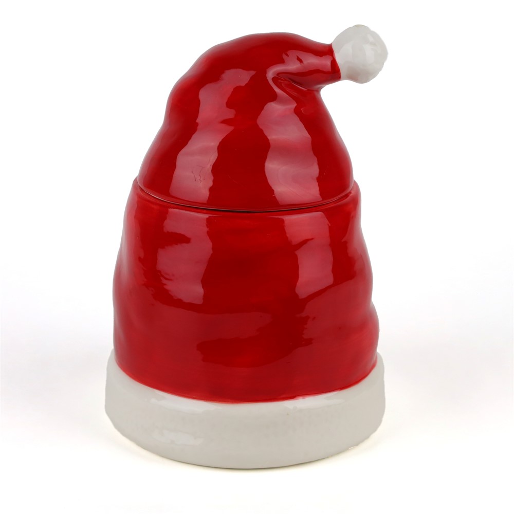 Keramička posuda s poklopcem kapa djeda božićnjaka h20cm d14cm crvena/bijela