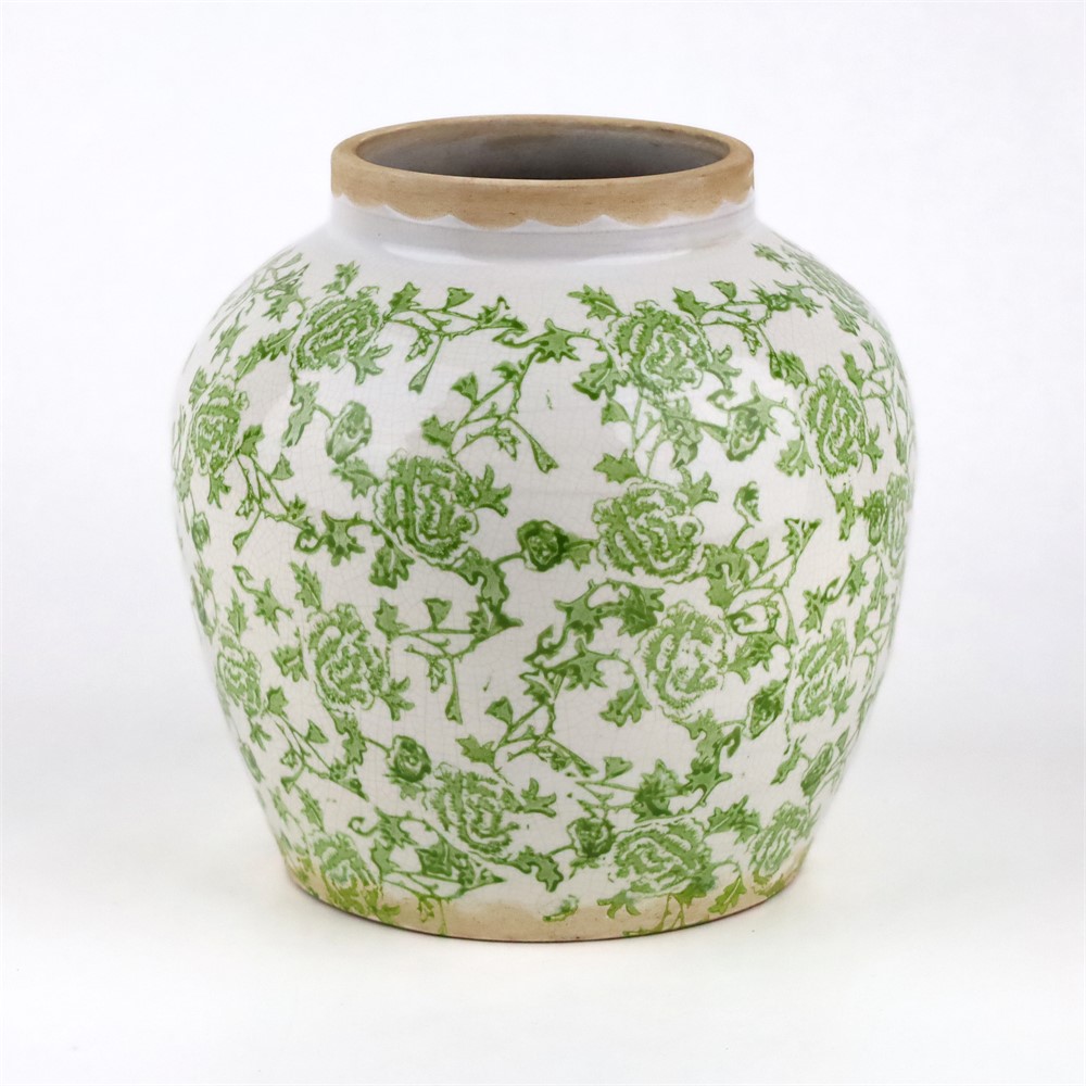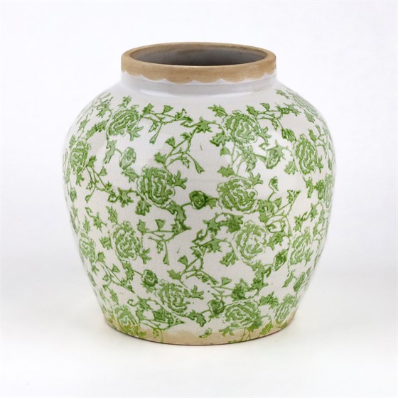 Keramička vaza h22d22cm bijela sa zelenim cvjetovima