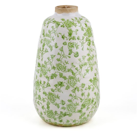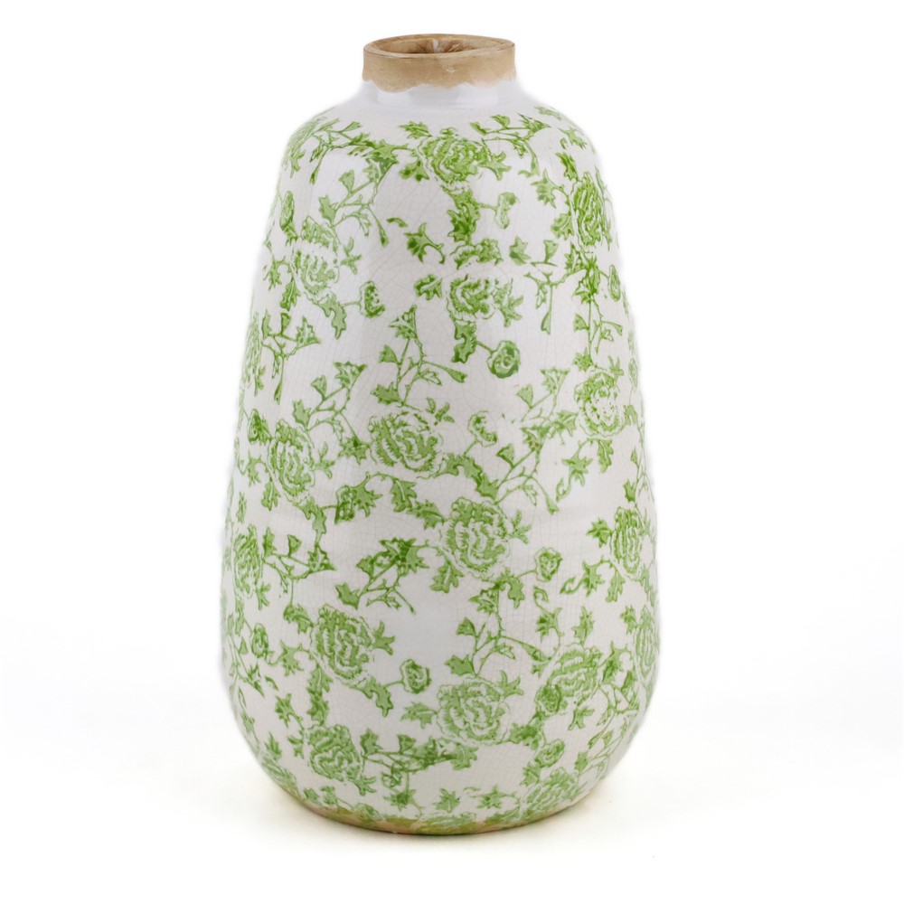 Keramička vaza h35d19cm bijela sa zelenim cvjetovima