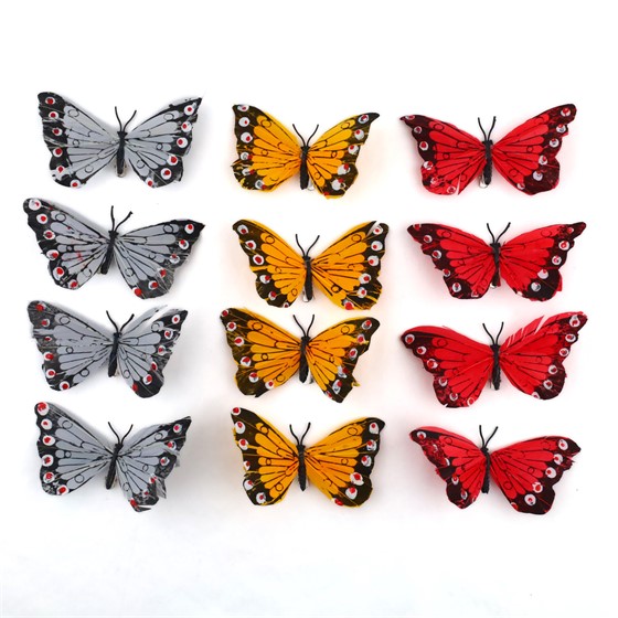 Leptiri 12xh7cm x12kom crvena/žuta/siva