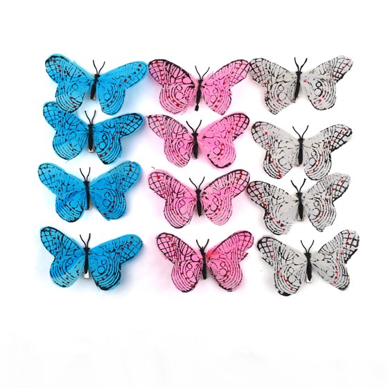 Leptiri 12xh8cm x12kom bijela/sv.roza/tirkizna
