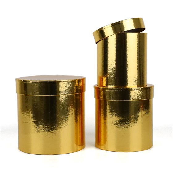 Poklon kutija okrugla x3 zlatna 20/20, 18/18, 15/15cm