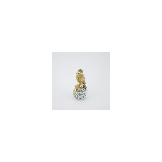 Ptica s kapom na kuglici h16 d8cm bijela/zlatna