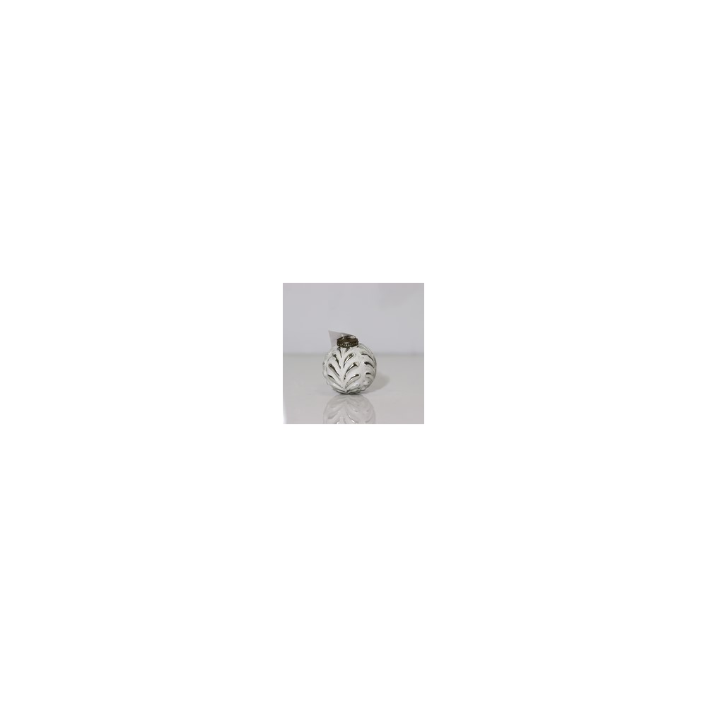 Staklene kuglice uzorak lišće 8cm x3kom glitter/wool white 2ass
