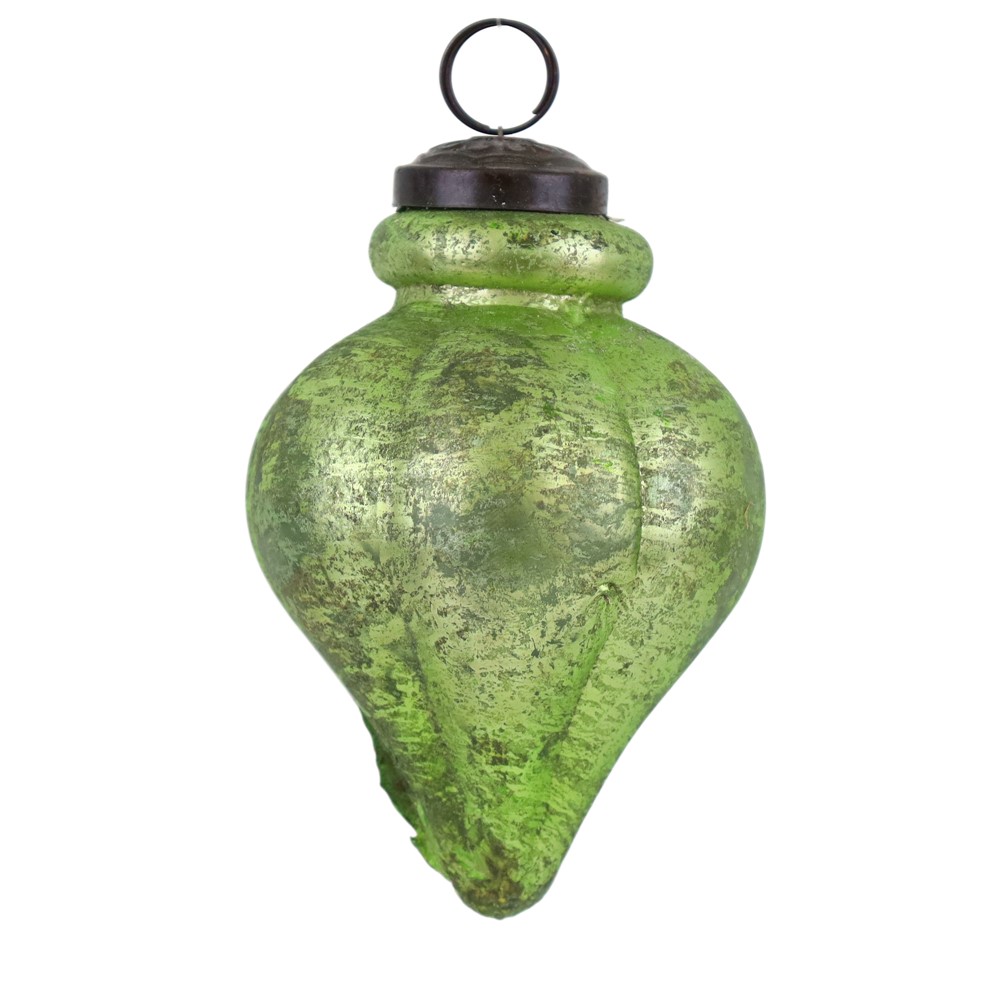 Staklena kuglica lukovica 8x12cm antik sv.zelena