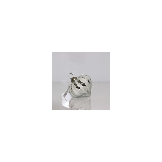 Staklena kuglica rebrasta lukovica 10x10cm srebrna