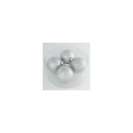 Staklene kuglice 10cm/4kom - srebrna/gliter iznutra