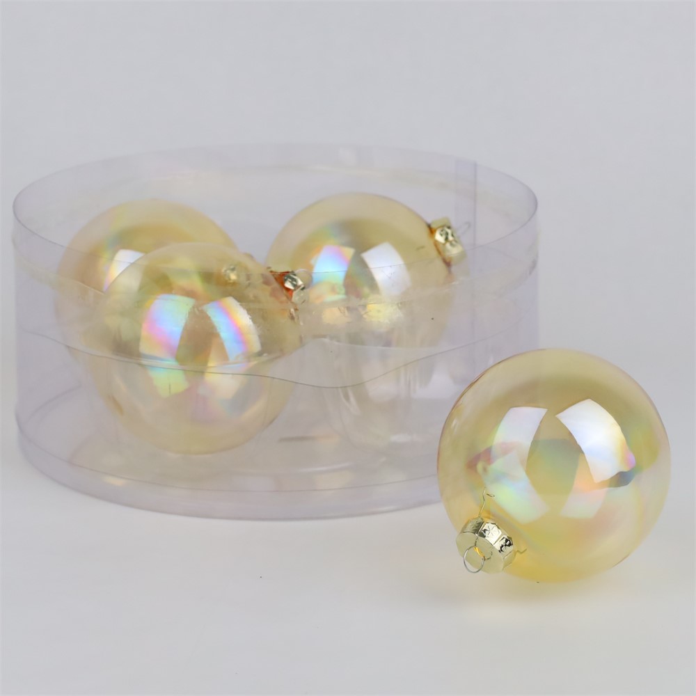 Staklene kuglice 10cm/4kom - zlatna transp.iris