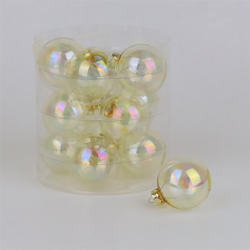 Staklene kuglice 6cm/12kom - zlatna transp.iris