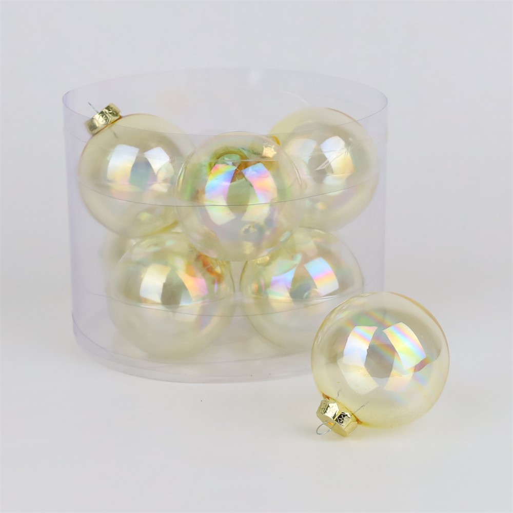 Staklene kuglice 8cm/8kom - zlatna transp.iris