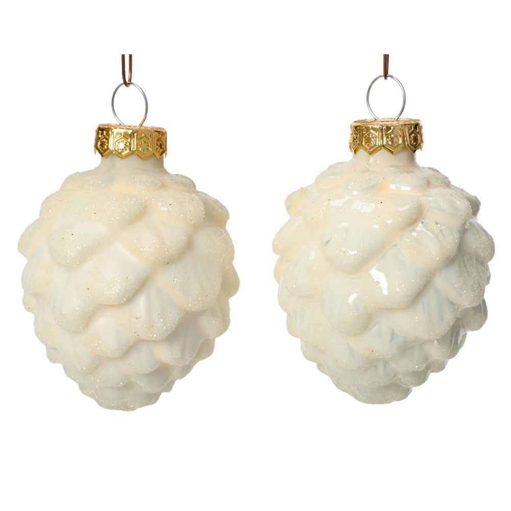 Staklene kuglice češeri d5h7cm x6kom vuneno bijela