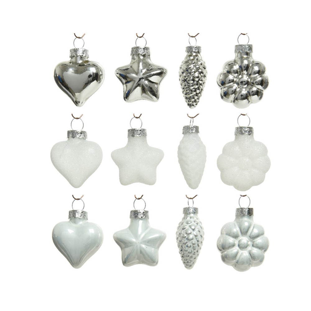 Staklene kuglice mix 2x4cm x12kom glitter, bijela/srebrna