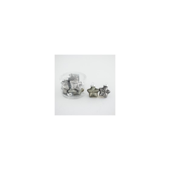 Staklene kuglice zvijezda 2x4,5x4cm x12kom topla siva