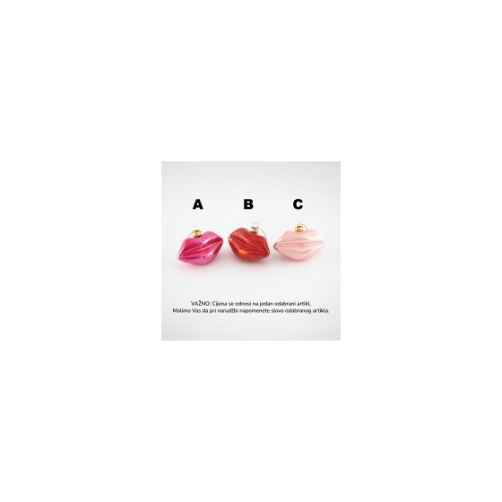 Stakleni ukras usne 4,4x9,4cm h6cm glitter 3ass
