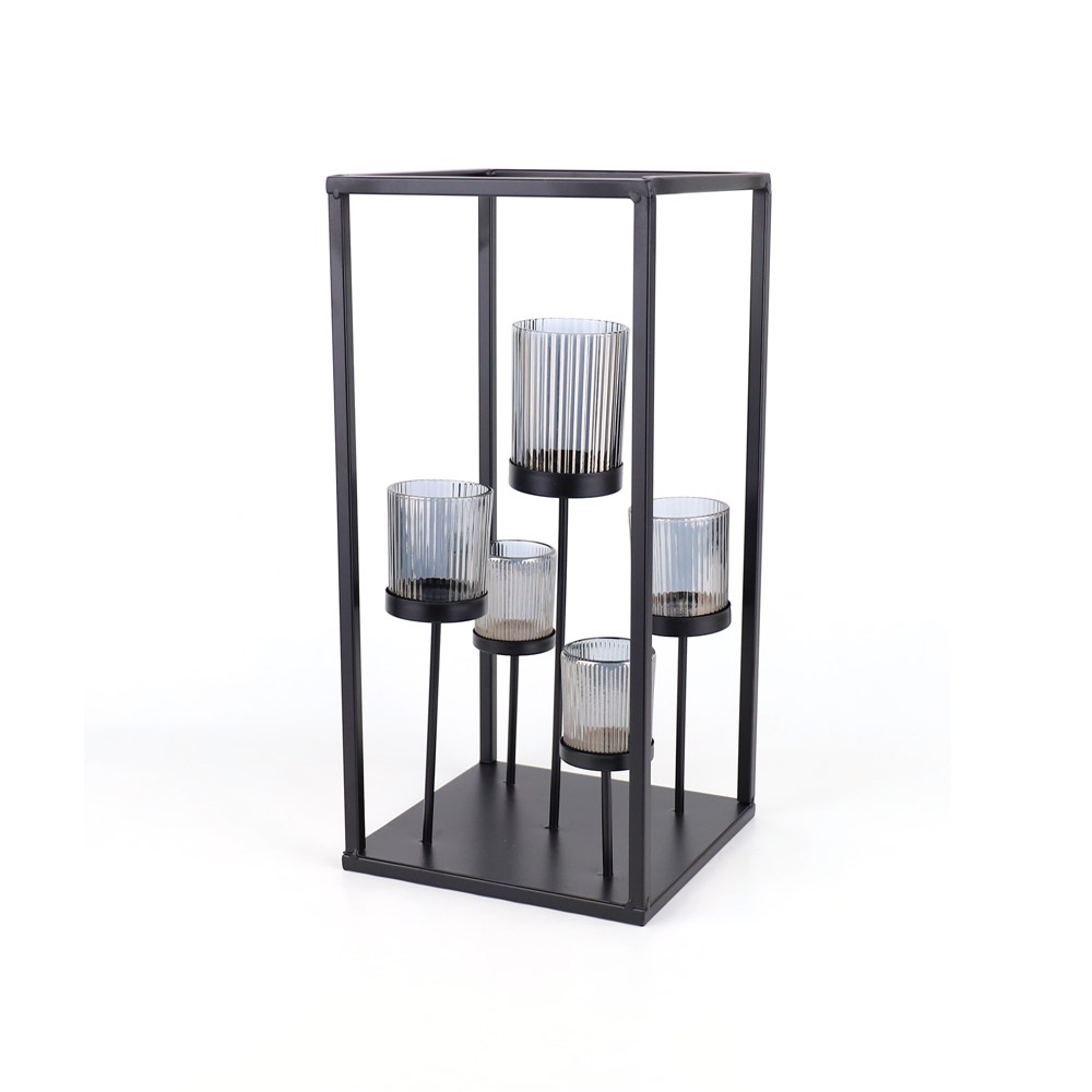 Svijećnjak metal staklo h42,5cm 20x20cm x5 crna/antracit