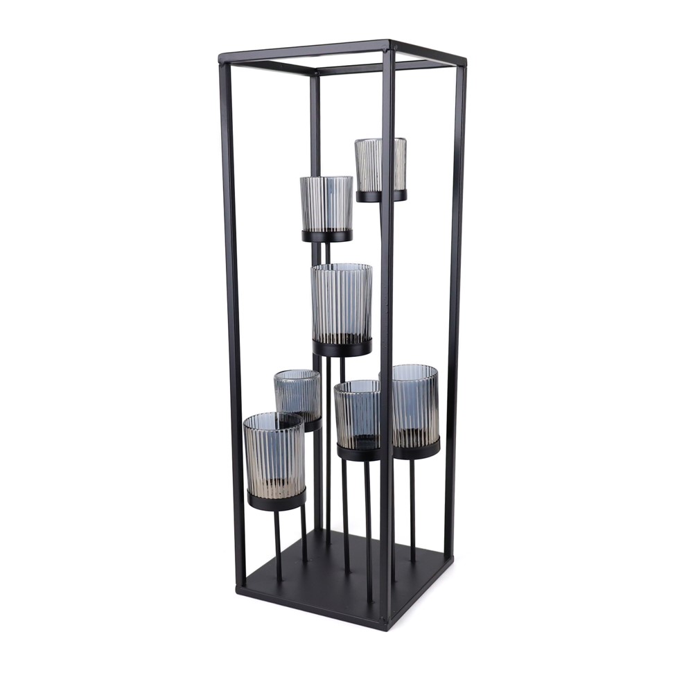 Svijećnjak metal staklo h61cm 20x20cm x7 crna/antracit