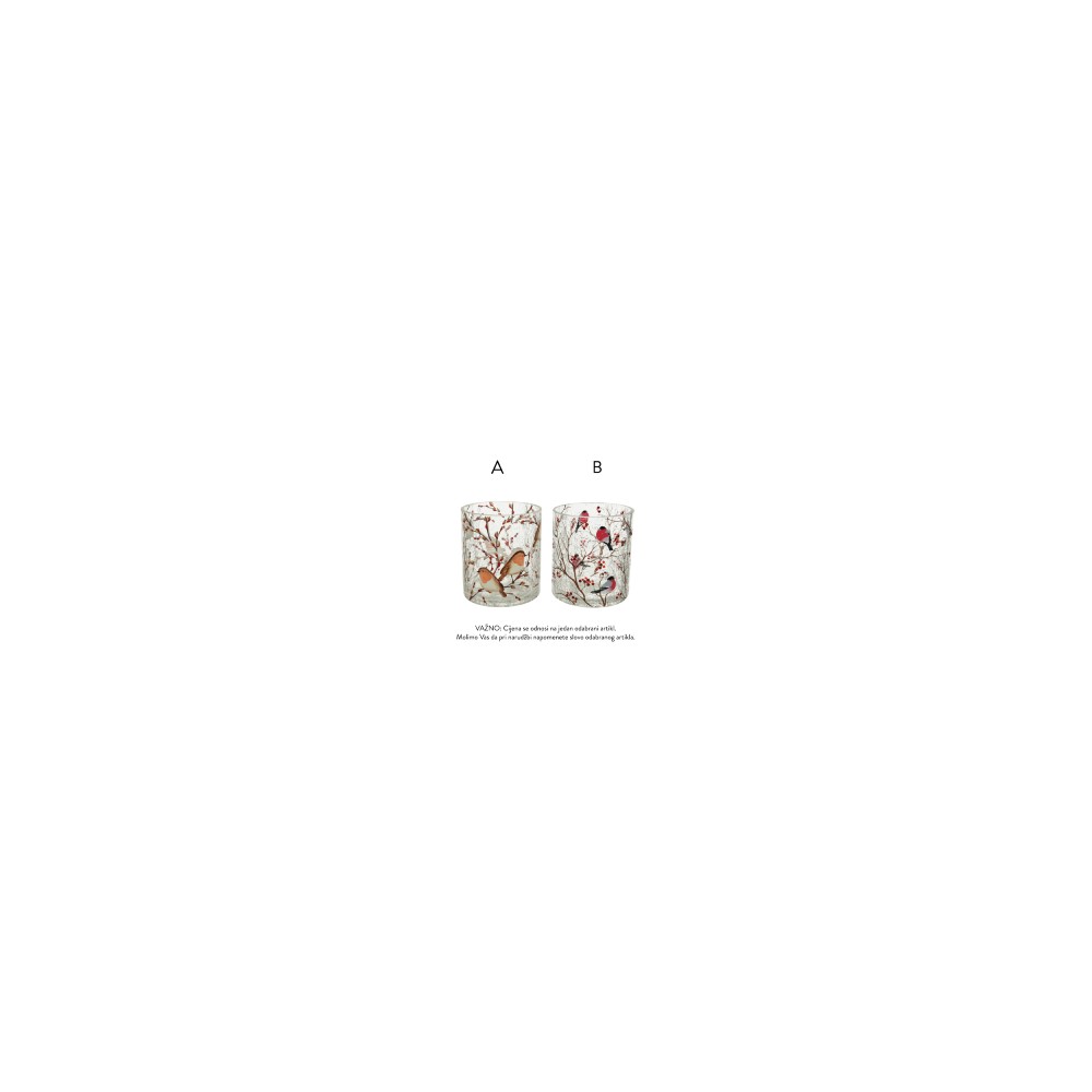 Svijećnjak za lučicu staklo d9 h10cm krakle ptice 2ass