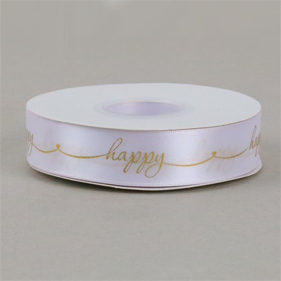 Traka saten Happy 25mm/30m bijela