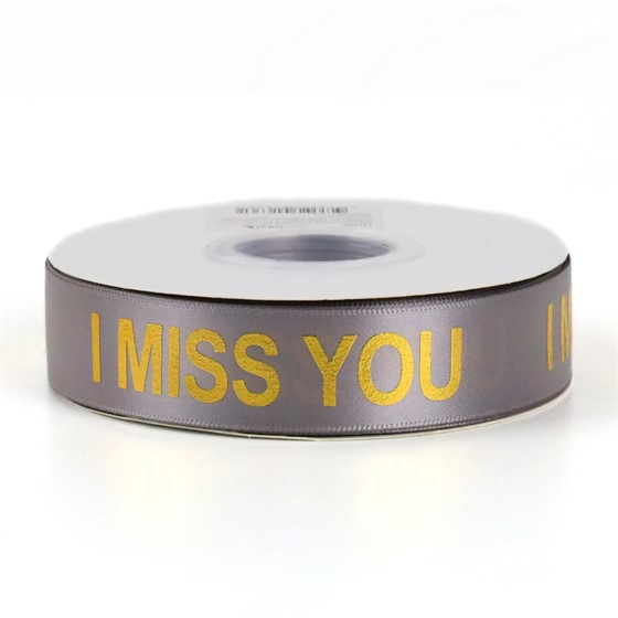 Traka saten I miss you 25mm/30m siva/zlatna