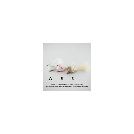 Ukras ptičica na kvačici 17x4,5xh6cm zlatna bijela roza 3ass