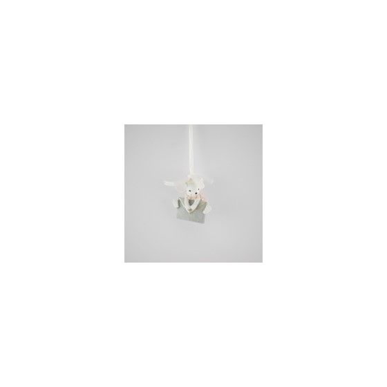 Ukras za bor miš s pismom 6,5x4cm h7cm bijela/roza