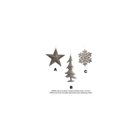 Ukras za bor plastični 0,5x0,5cm h10,5cm glitter/champagne 3ass