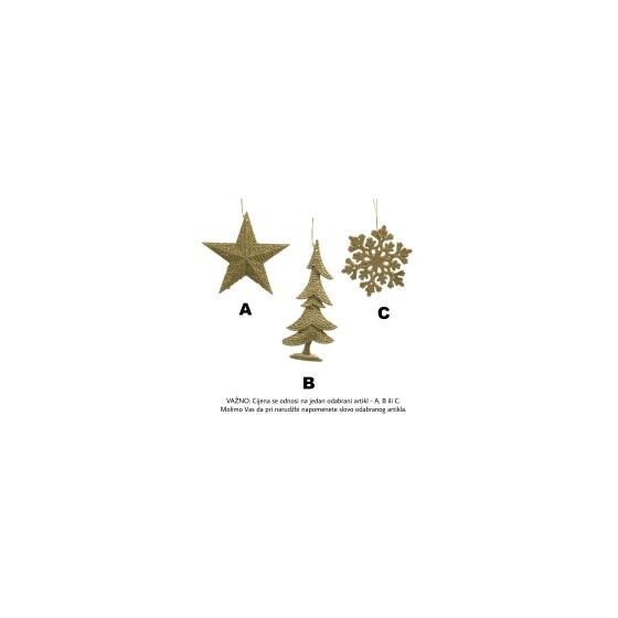 Ukras za bor plastični 0,5x0,5cm h10,5cm glitter/zlatna 3ass