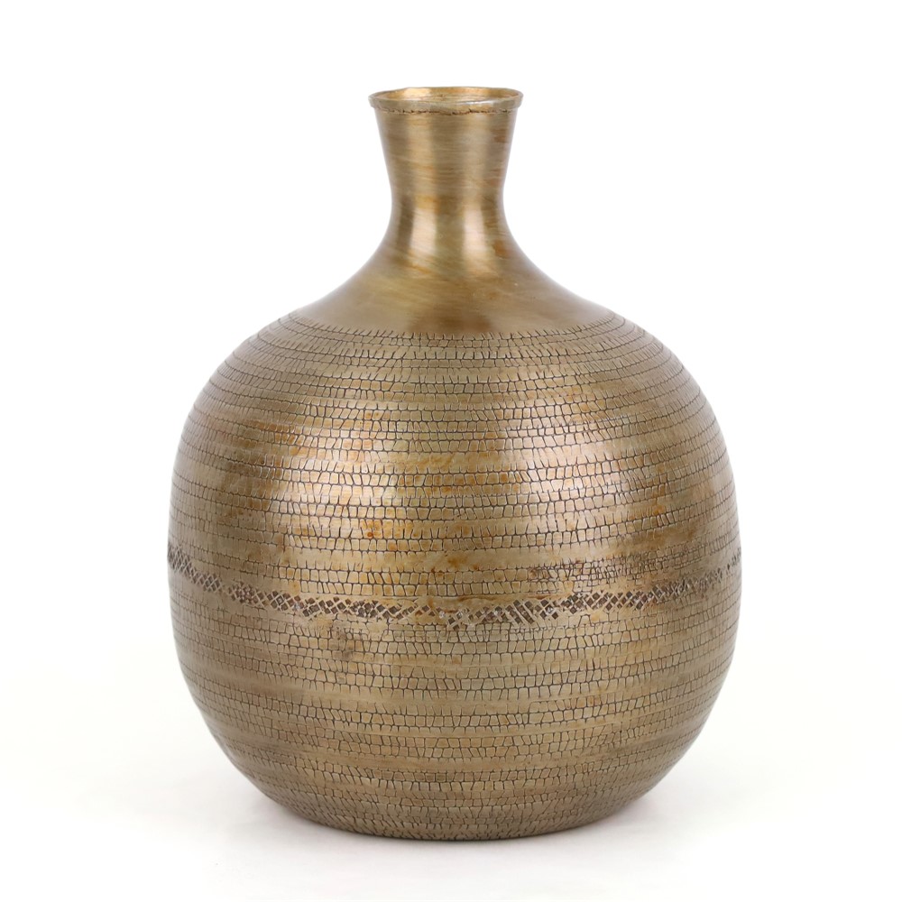 Vaza metalna boca gravirana h25cm d20,5cm antik mjed
