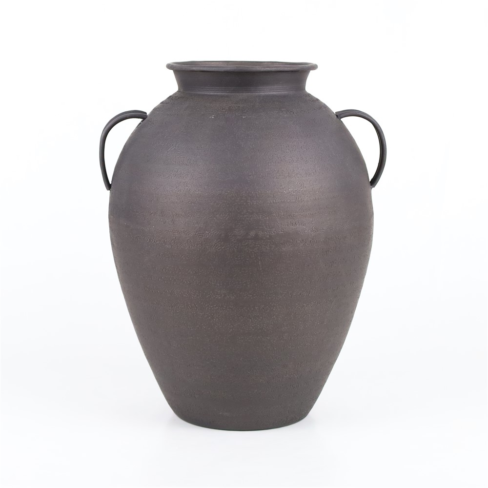 Vaza metalna s ručkama gravirana 27x25xh34cm lead siva