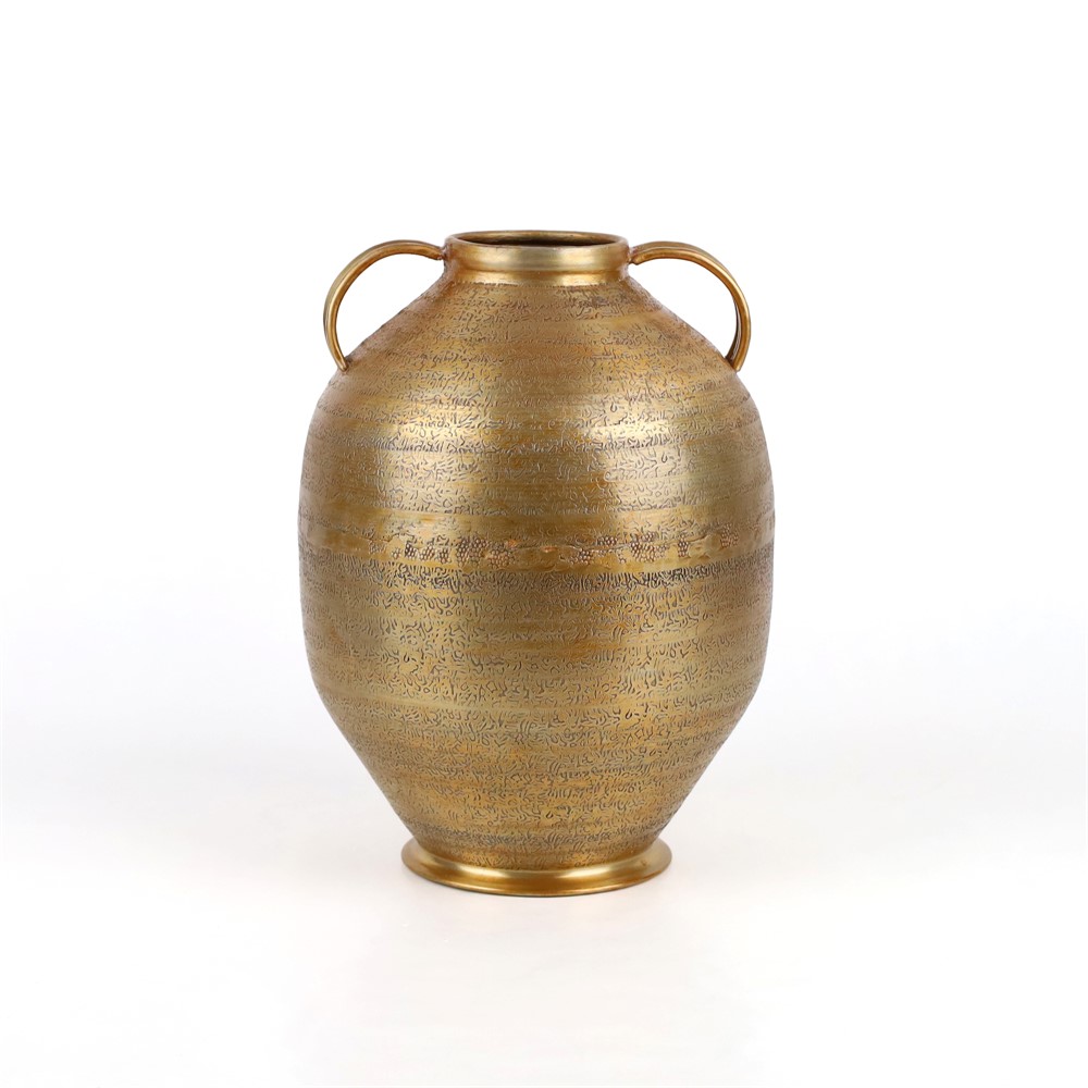 Vaza metalna s ručkama gravirana h28cm d20cm zlatna