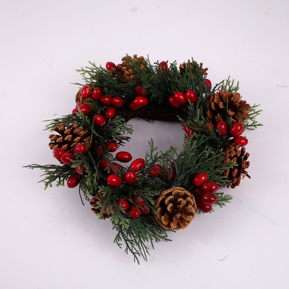 Vijenac čempres, crvene bobice, češeri 30cm premium