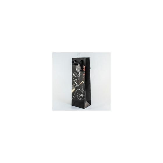 Vrećica 12x9cm h36cm deblji papir boca Wine/crna